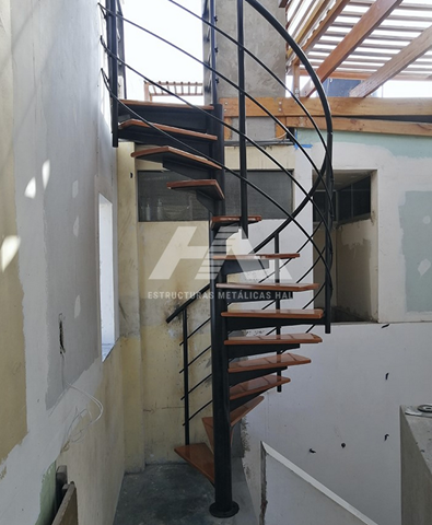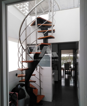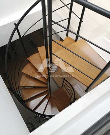 Escaleras caracol de diseño compacto y elegante, ideales para optimizar espacios reducidos. Su estructura funcional cumple con las normas de seguridad.